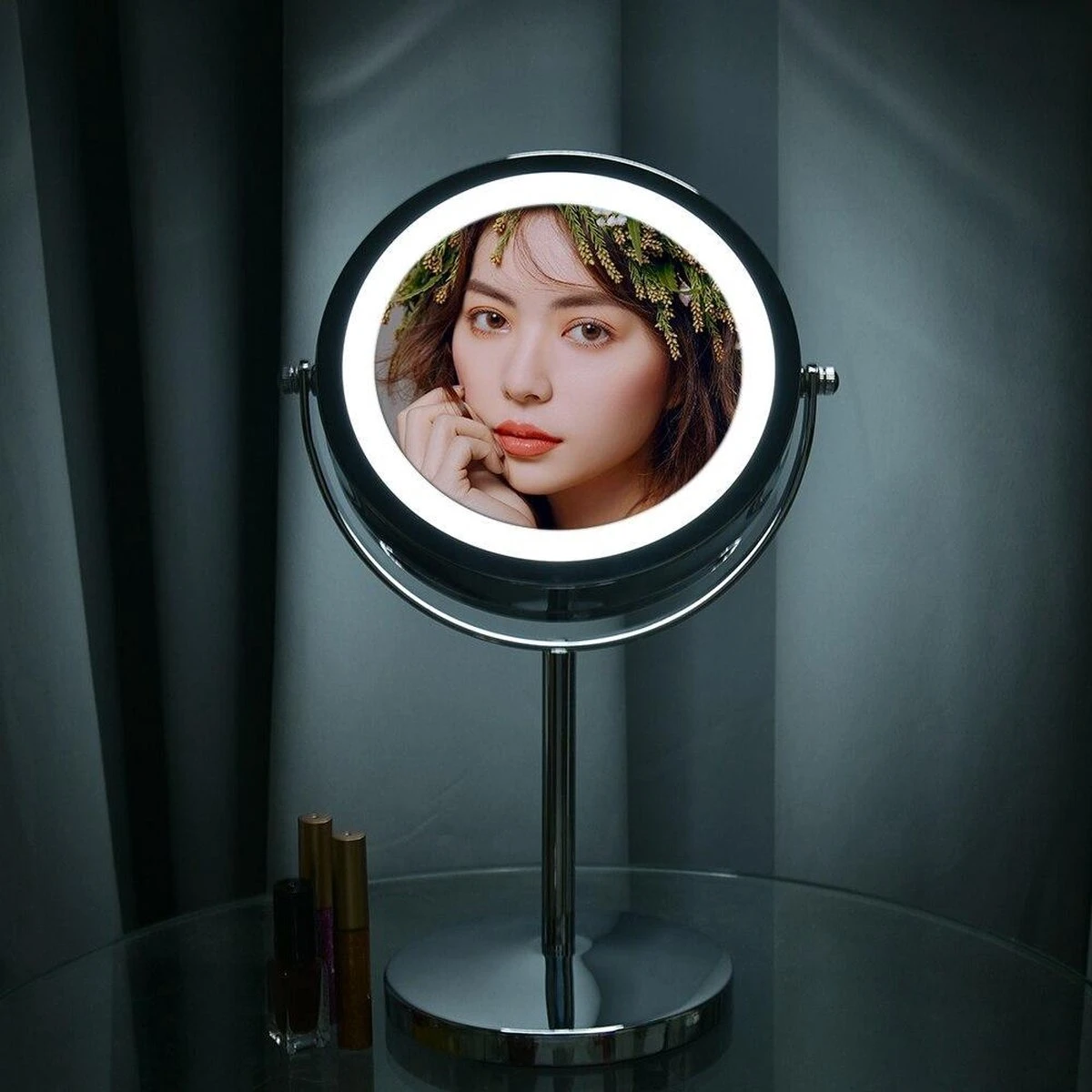 Slecht licht om uw make-up bij te werken is verleden tijd dankzij deze ronde make-upspiegel met ingebouwde ledverlichting. Door de verlichting kunt u ieder detail goed zien, zoals het kleurverloop van uw smokey eyes of een eigenwijs wenkbrauwhaartje. Stel zelf de lichtsterkte in door uw vinger drie seconden op de voet van de spiegel te houden. Ook handig: de voet van de spiegel heeft een opstaand randje, zodat het een bakje is voor uw kleine make-upspullen. Daarmee is deze make-upspiegel onmisbaar in ieder modern huishouden!