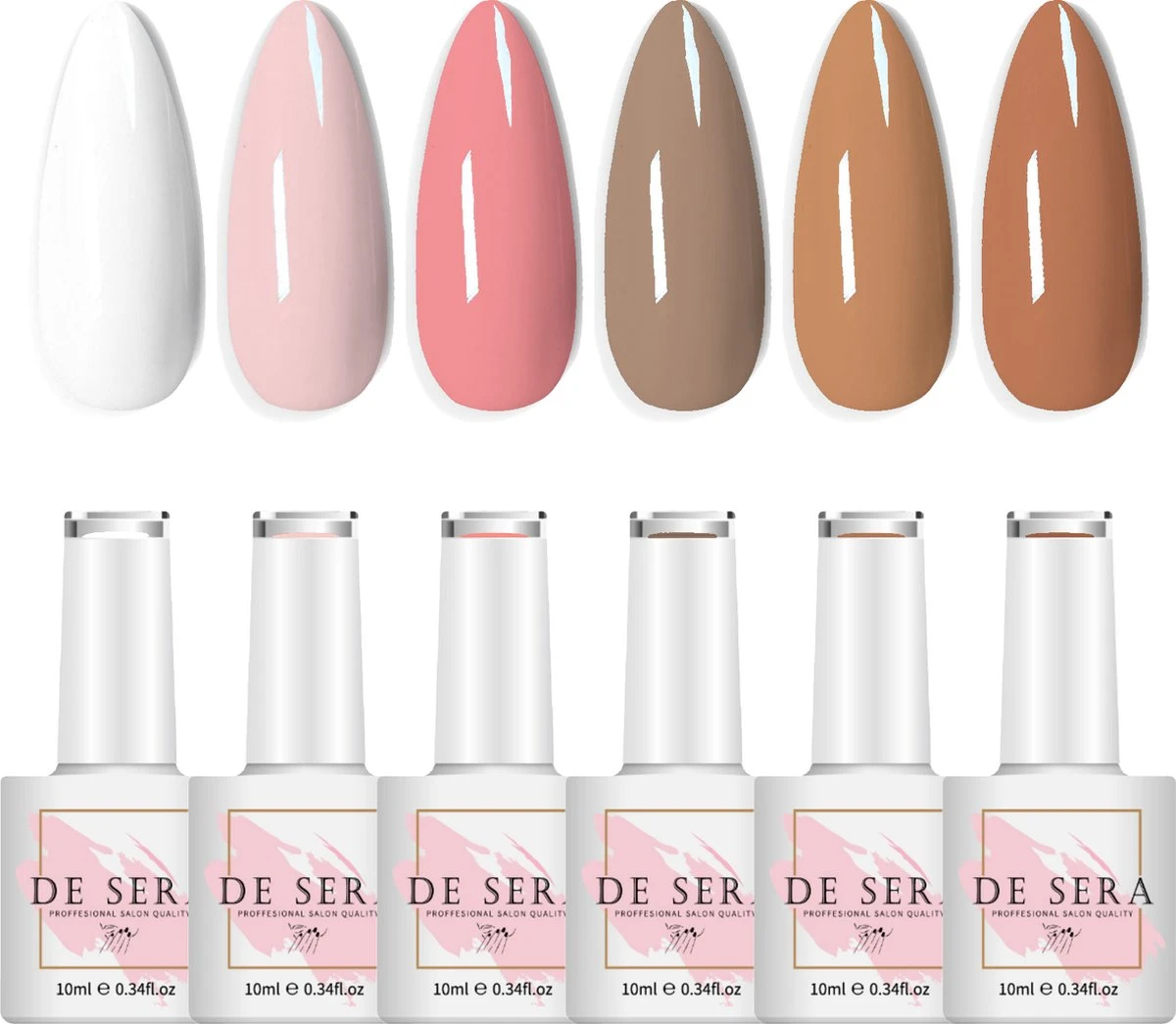 De kleuren van de gellak van De Sera zijn samengesteld door een professional. Zo hoef jij niet meer te bedenken welke kleuren momenteel hip en trendy zijn. Deze gellak set bestaat uit zes neutrale kleuren nagellak, oftewel de nude kleuren. Bijvoorbeeld nude pink, brown of caramel. Deze neutrale maar mooie kleuren van de gellak geven je nagels een fantastische uitstraling.
