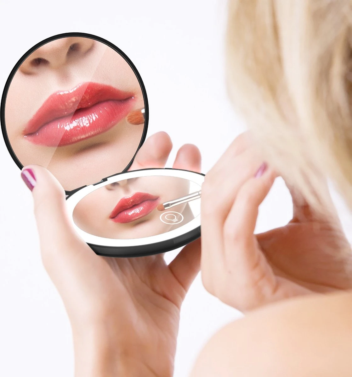 - Oplaadbare led-spiegel: Deze spiegel beschikt over 400 mAh oplaadbare lithiumbatterijen. Op te laden met een USB-kabel, duurt slechts 1-2 uur om volledig op te laden. Het is uitgerust met daglicht-LED’s die het natuurlijke zonlicht nabootsen om u te voorzien van natuurlijk licht, zodat u er op uw best kunt uitzien waar u ook bent. Deze LED verlichte compacte spiegel heeft de juiste vergroting voor elke taak, van pincet tot make-up toepassing tot het indoen van contactlenzen.